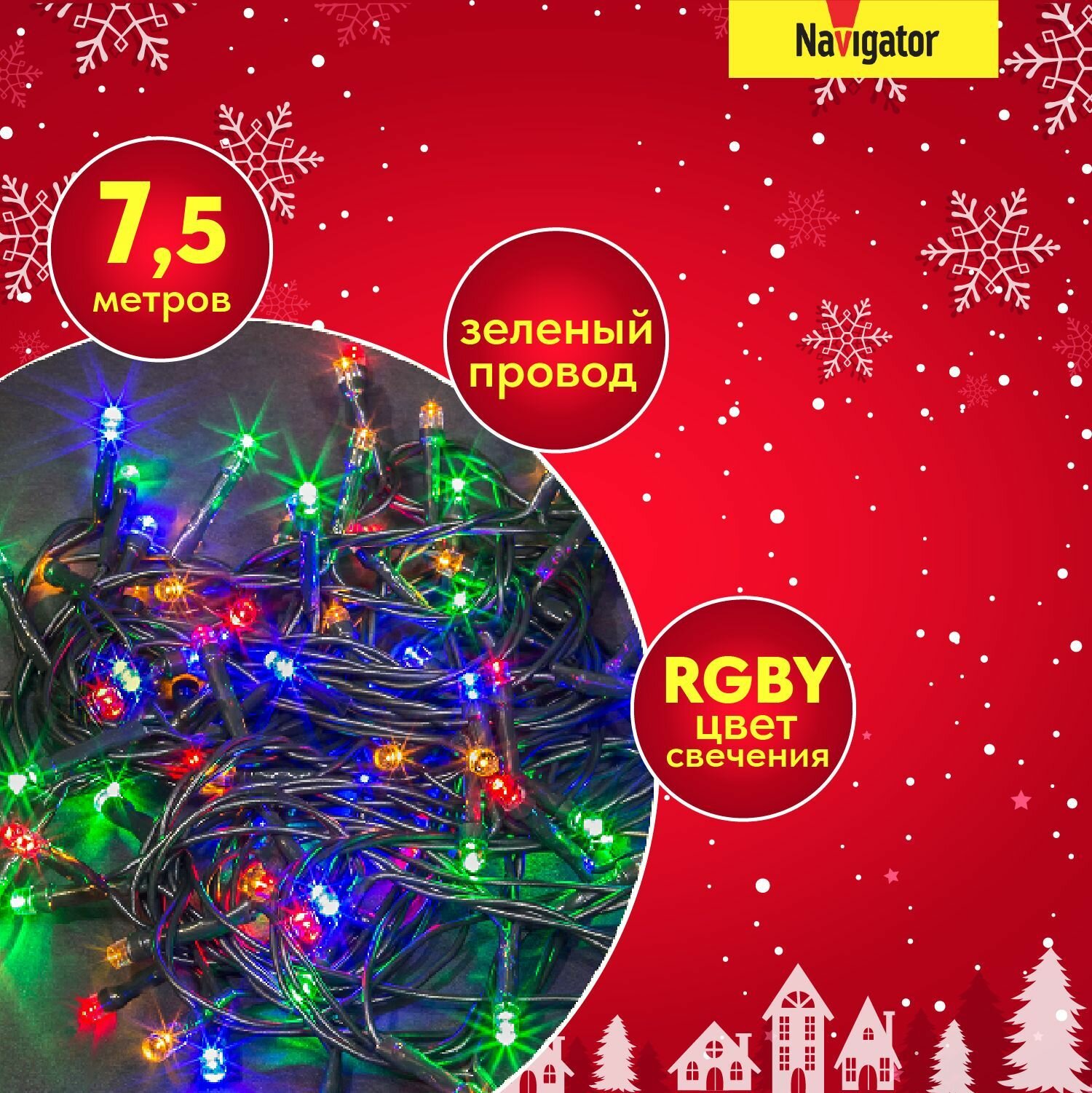 Гирлянда светодиодная 61 810 NGF-S01-120RGBY-5-7.5m-230-C8-G-IP20 NAVIGATOR 61810