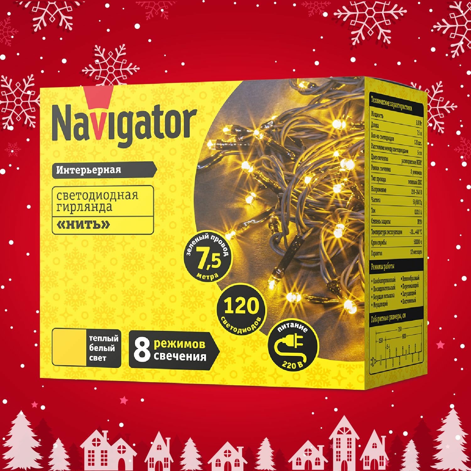 Купить Гирлянда новогодняя светодиодная NGF-S01-120WW-5-7.5m-230-C8-G-IP20 Navigator Group 21253