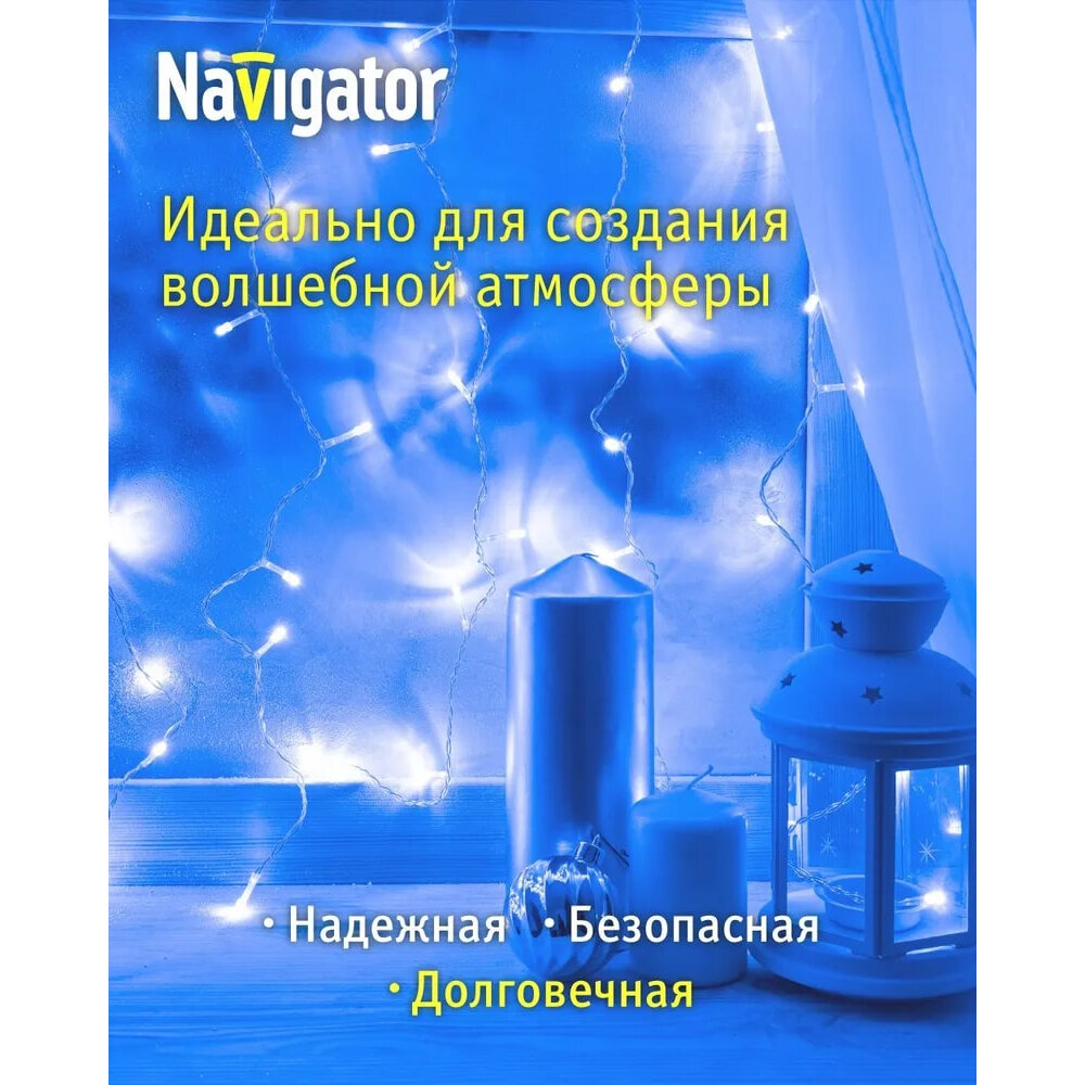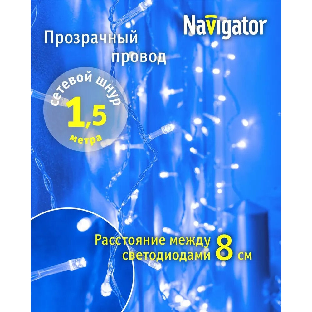 Гирлянда световой занавес Navigator 61 870, 2 х 1.5 м, синий свет, прозрачный провод, IP44