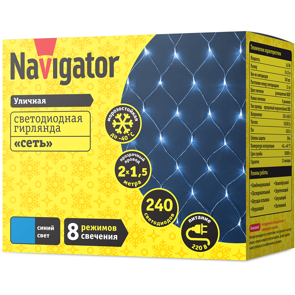 Гирлянда светодиодная 61 869 NGF-C01-357CW-8-2х1.5m-230-TR-IP44 Navigator 61869