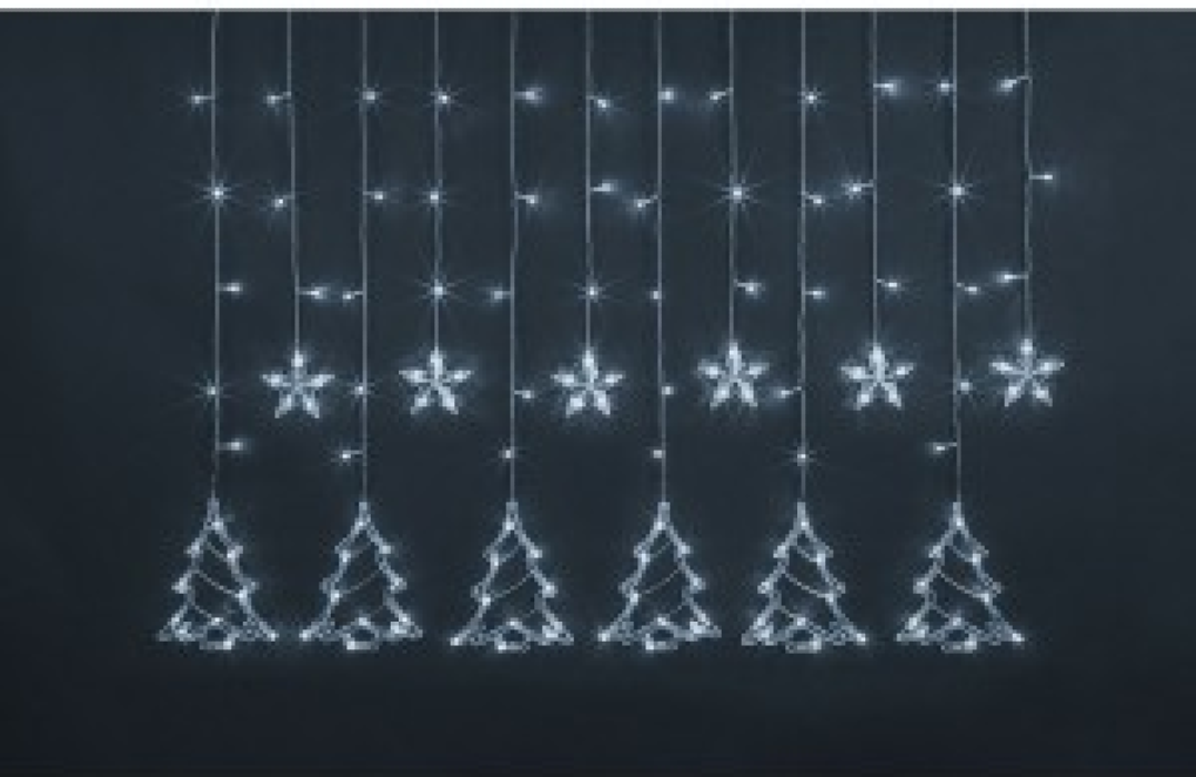 Купить Гирлянда-бахрома «Звёзды и ёлочки» Navigator 95 124, белый свет, 2.5 м, IP20