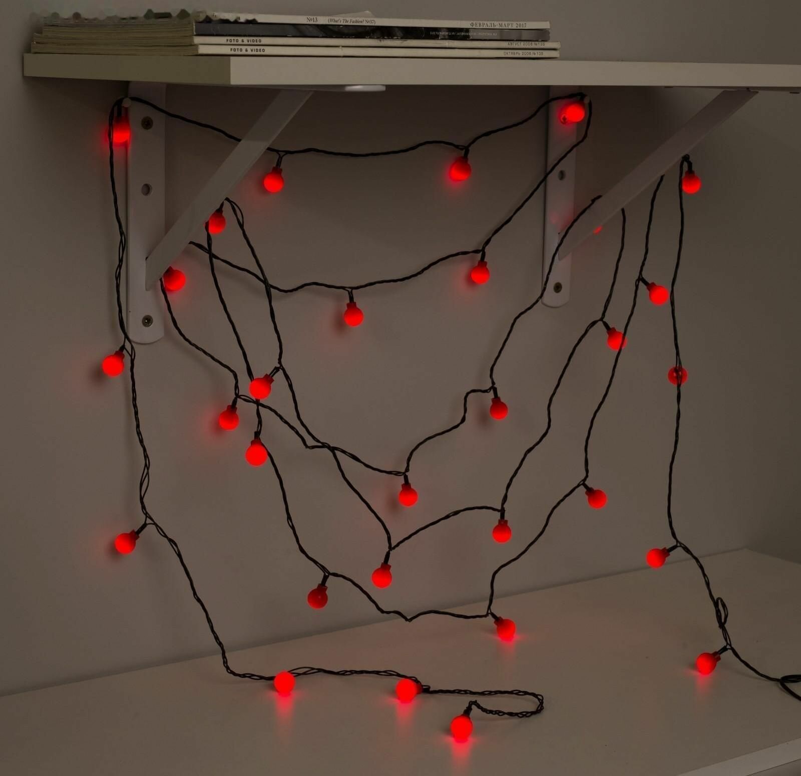 Комнатные гирлянды Luazon Lighting Гирлянда «Нить» 5 м с насадками «Шарики красные», IP20, тёмная нить, 30 LED, свечение красное, 8 режимов, 220 В