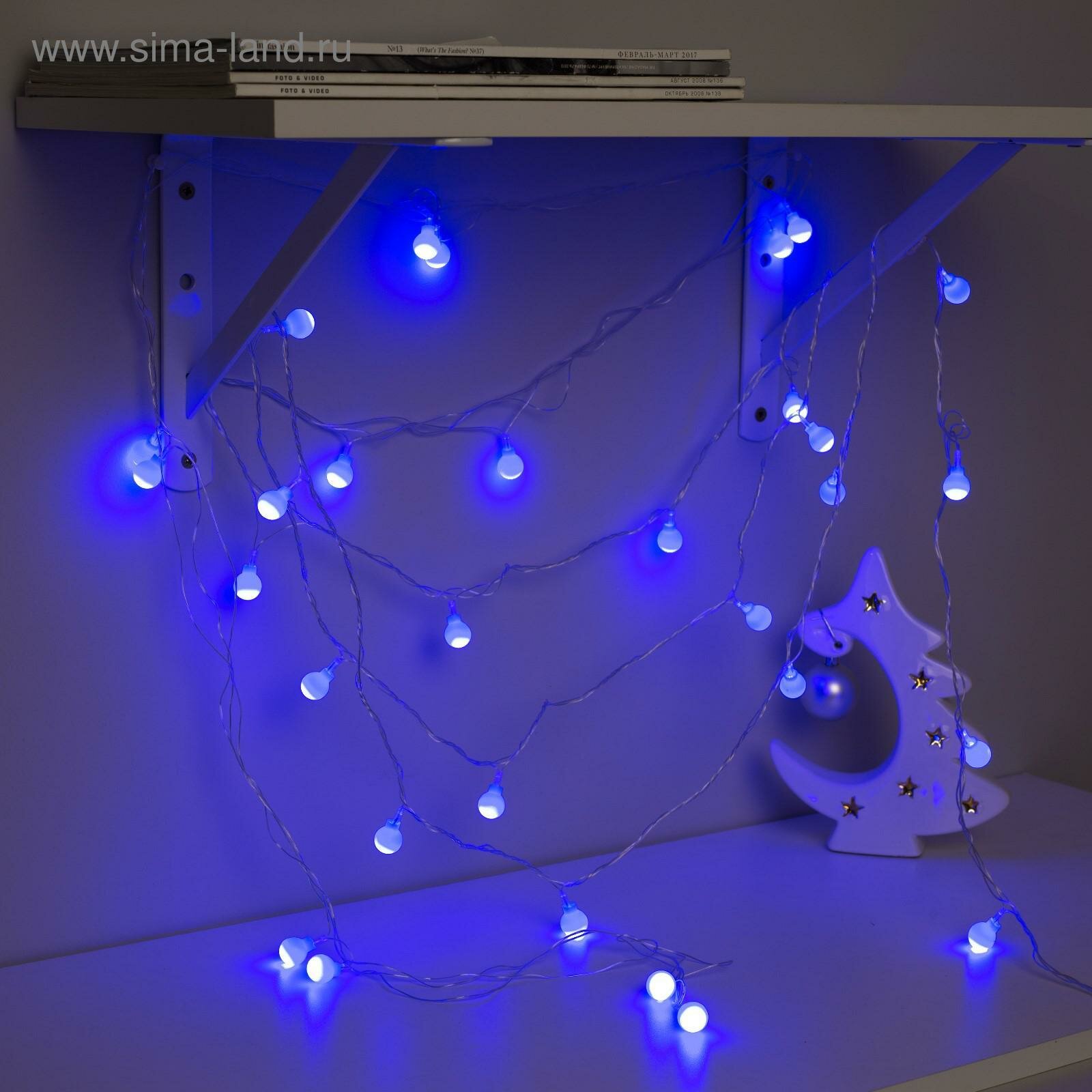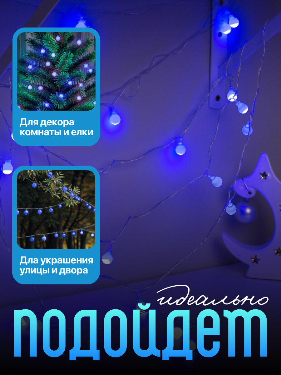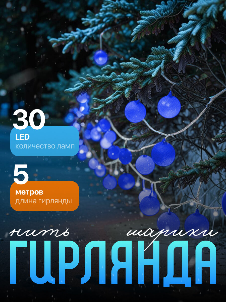 Купить Нить DCR. 5 м, с насад. “Шарики Синие”, IP20, Н.С. LED-30-220V, 8 режимов, синий