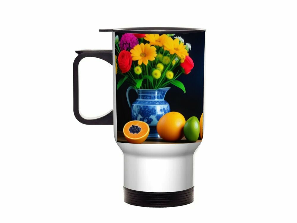 Купить Тремокружка для авто с принтом "Красивый натюрморт с фруктами и цветами" 0.5 л.