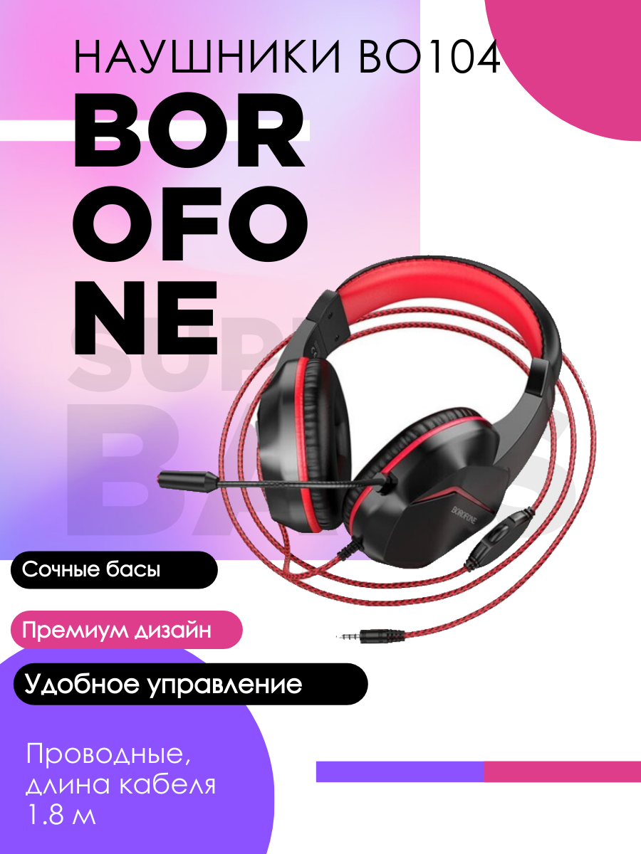 Наушники полноразмерные Borofone BO104 (игровые) (3.5 мм/USB) красный