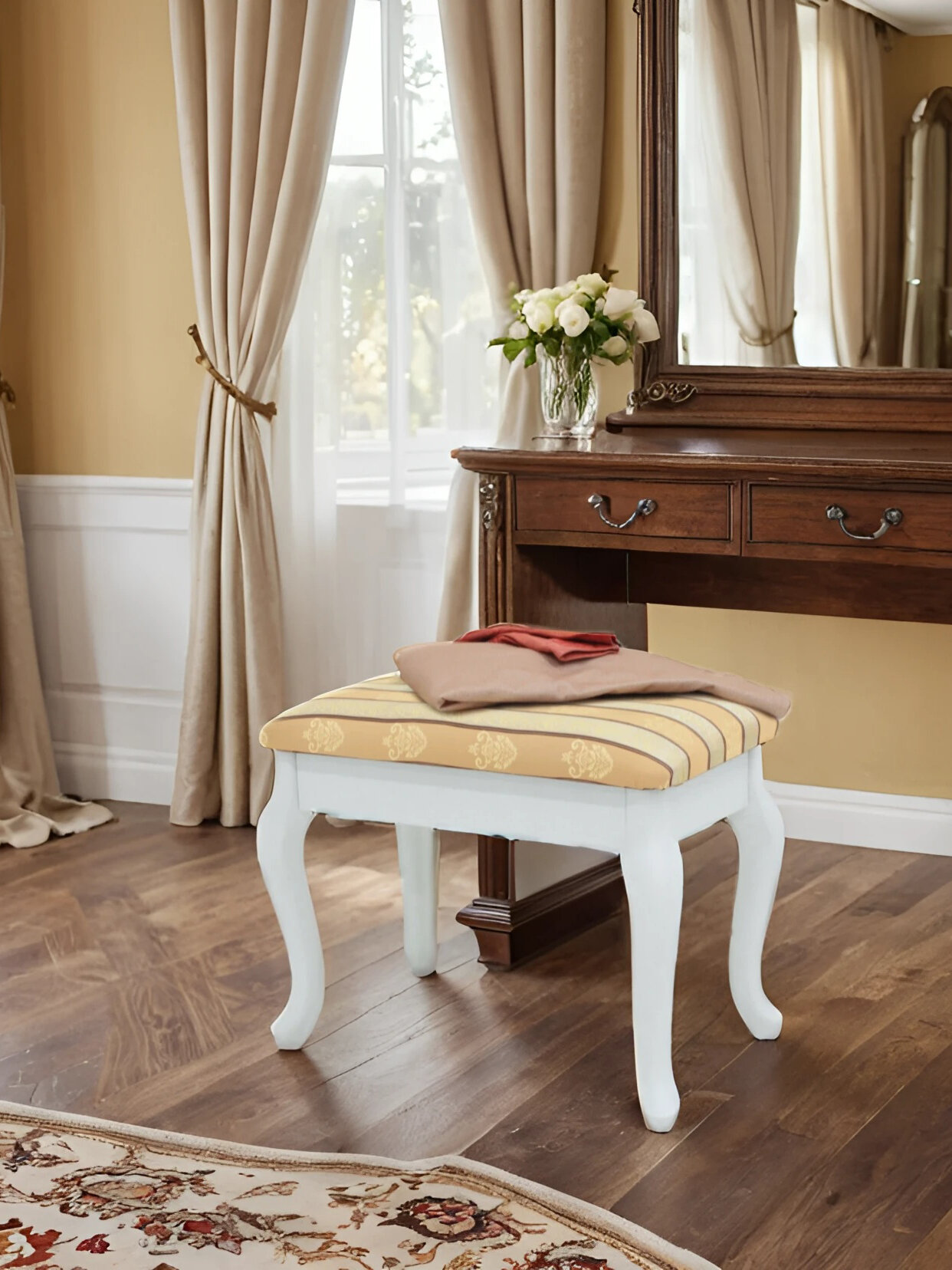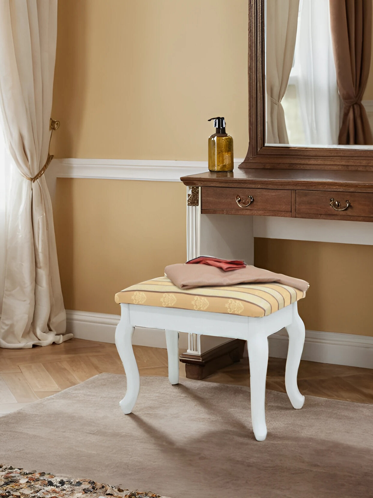 Банкетка Ретро с ящиком белый, ткань полоса бежевый