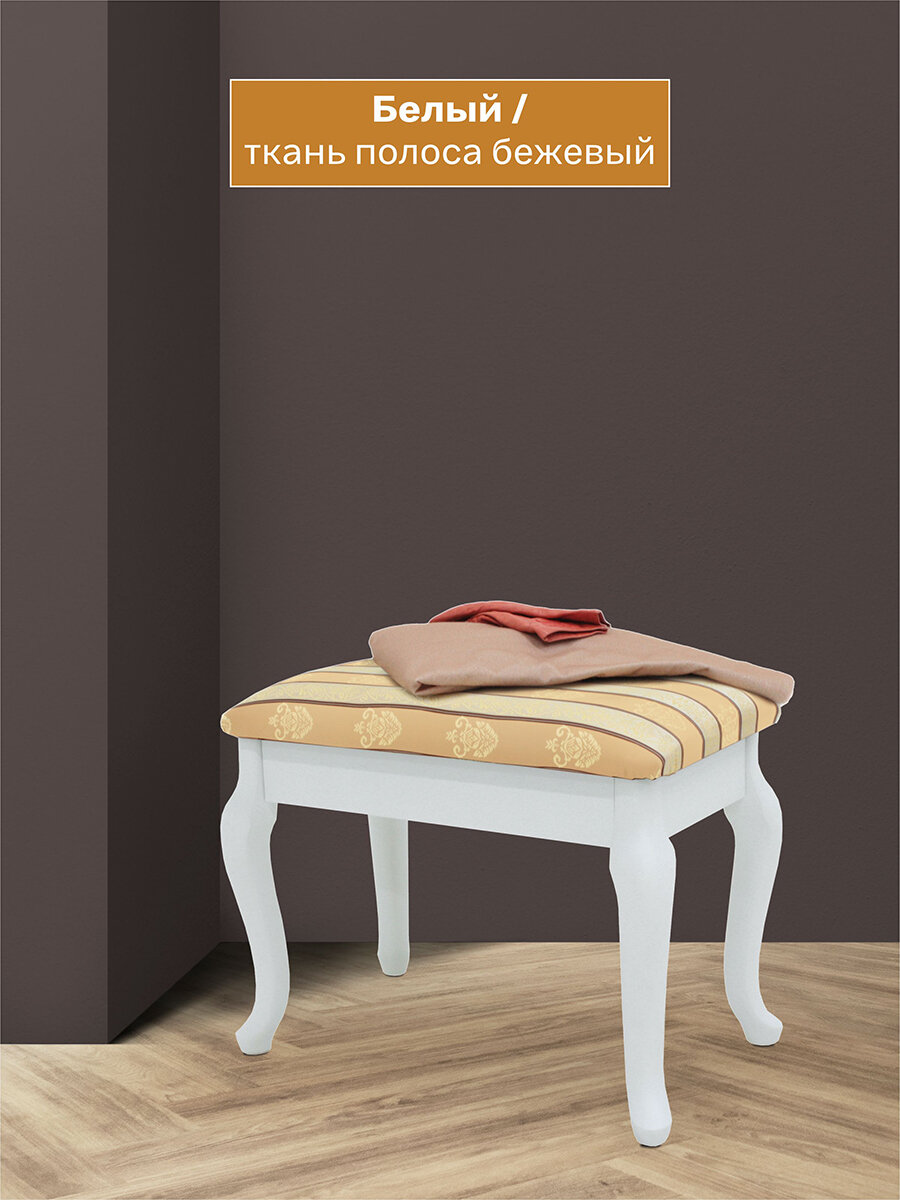 СохранитьПуфик банкетка в прихожую Мебелик с сиденьем Ретро с ящиком цвет белый, ткань полоса бежевый. интересное: