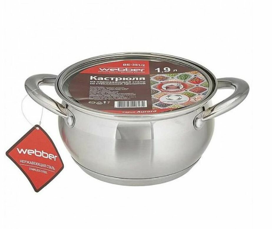 WEBBER BE-195/2 Кастрюля из нержавеющей стали со стеклянной крышкой 1,9л