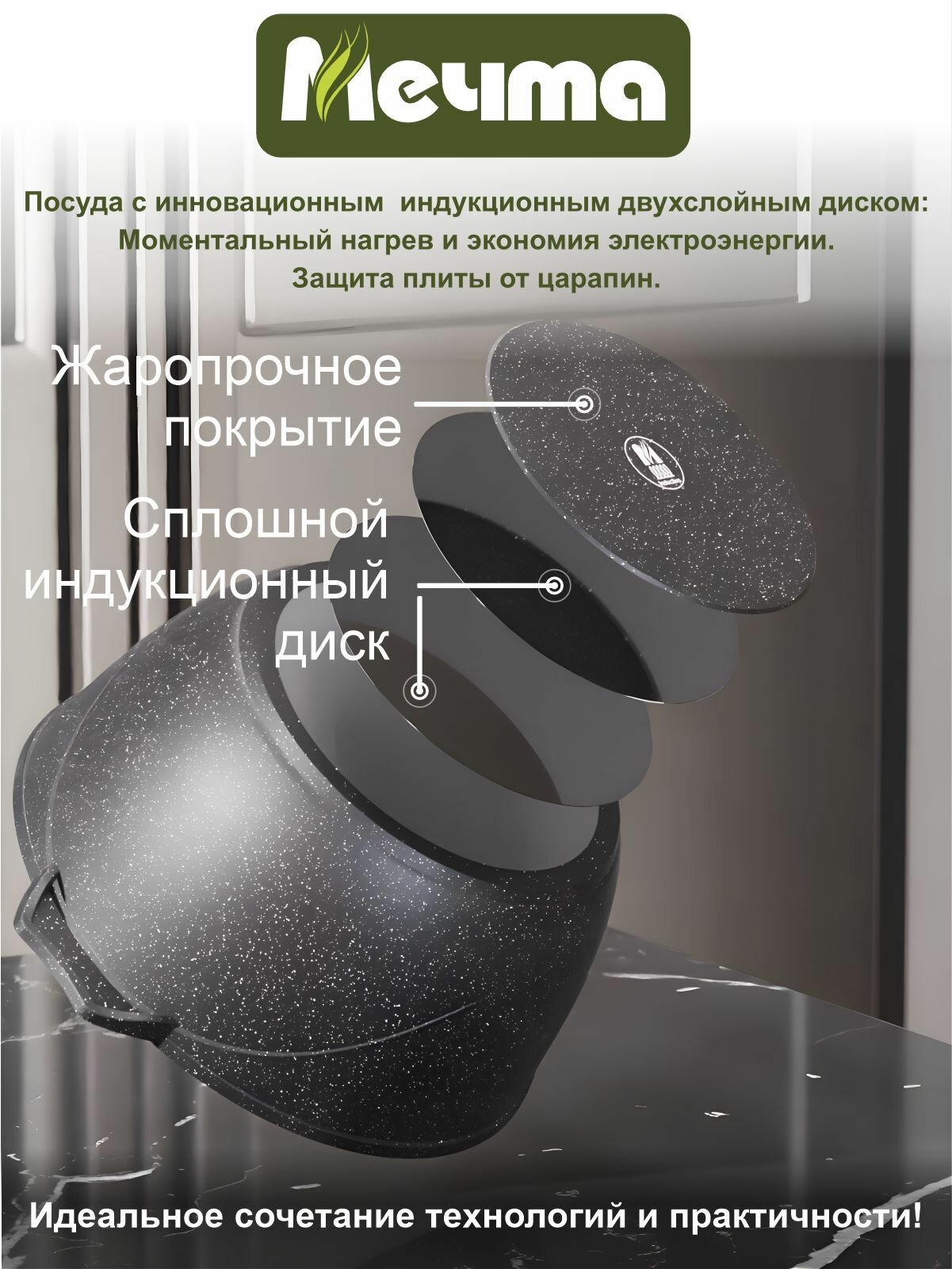 СохранитьКастрюля Мечта 5 л Гранит с антипригарным покрытием с крышкой, НЕ индукционная интересное: