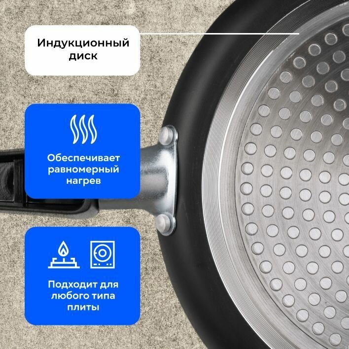 | Плюсы: | Для индукции самое оно, отлично нагревается и не пригарает. |