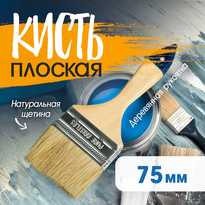 Кисть плоская тундра, натуральная щетина, деревянная рукоятка, 3", 75 мм интересное: