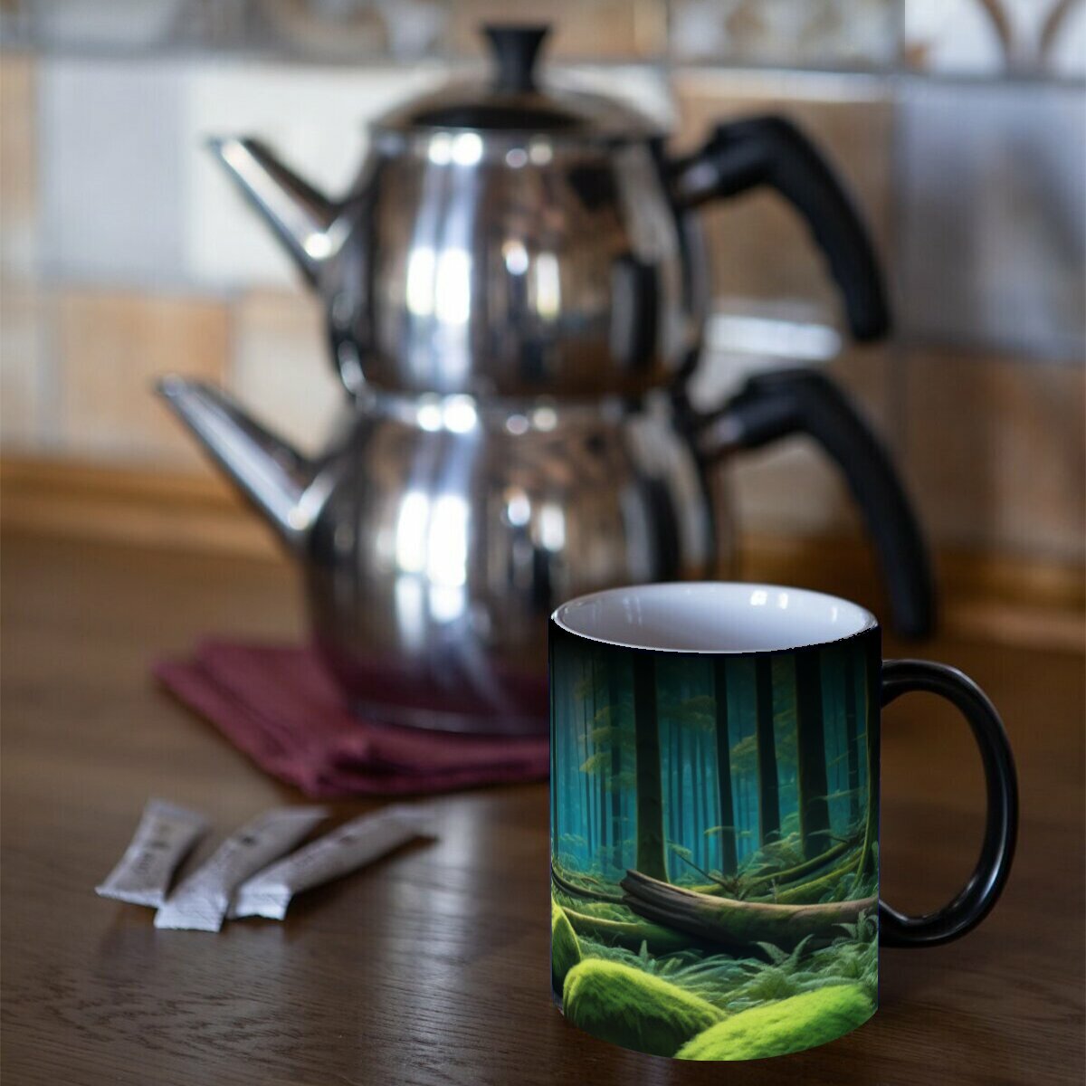 Купить Кружка хамелеон с принтом "Вечный покой лесного мира" 330 мл.