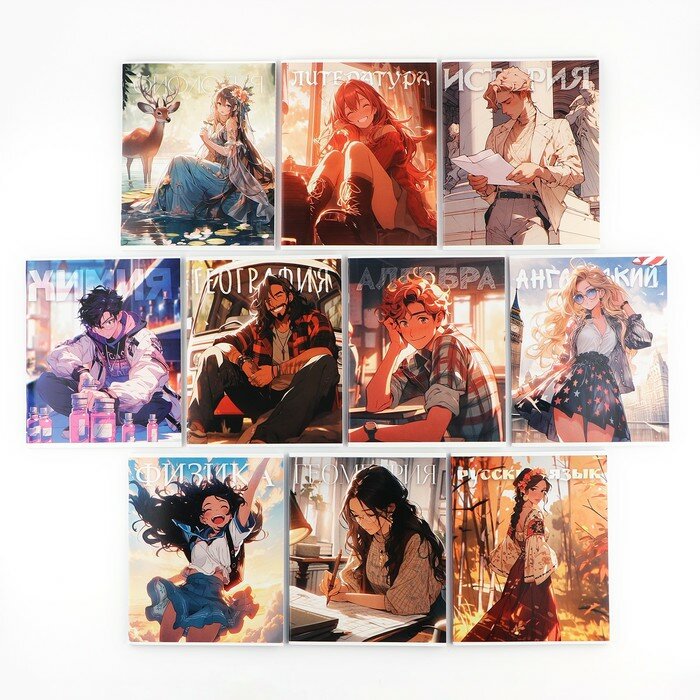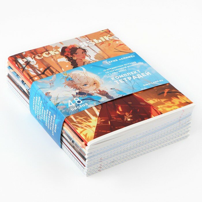 Набор тетрадей 48 листов, 10 предметов, внутренний блок №1 "1 сентября: Аниме" ВД лак интересное: