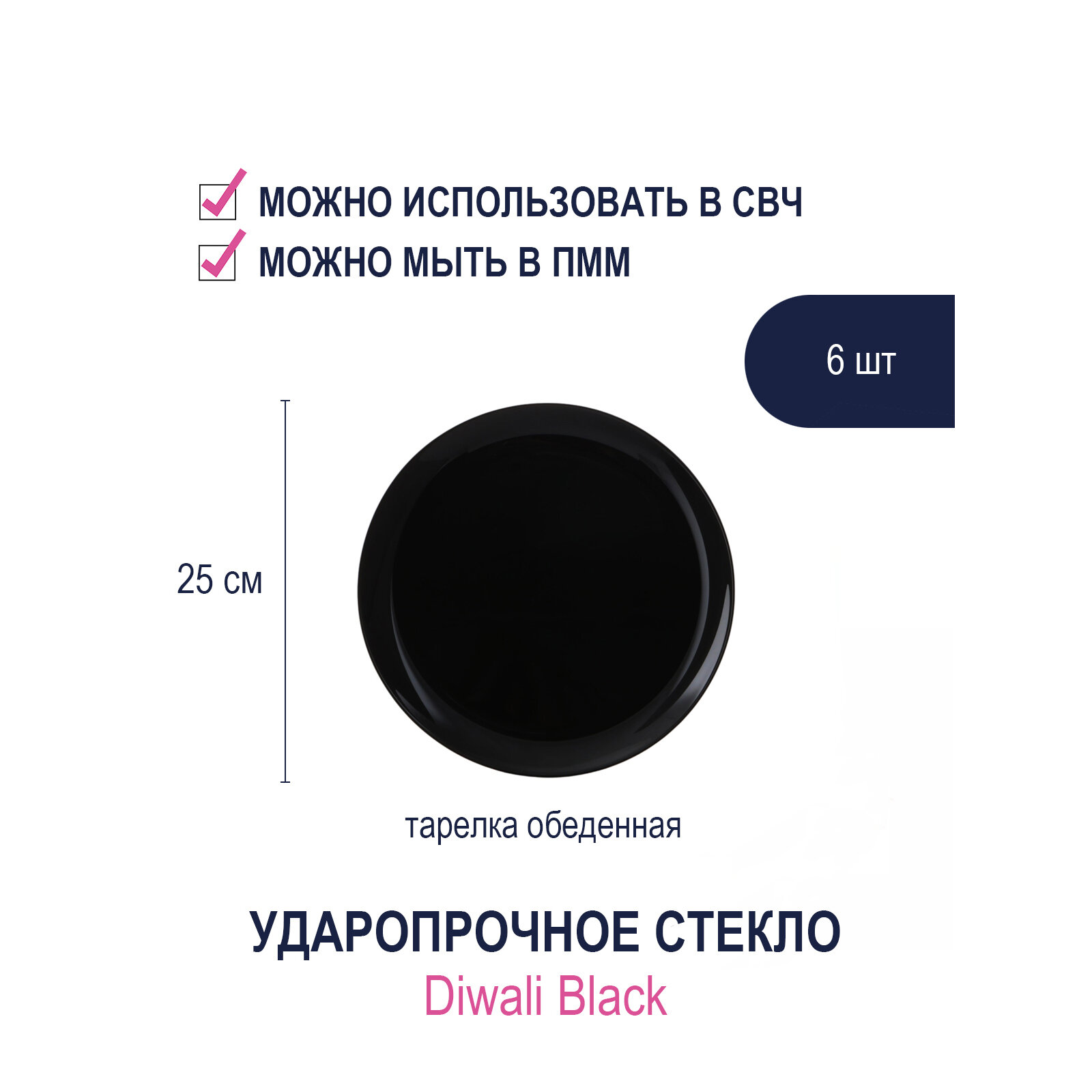Набор тарелок обеденных Luminarc дивали черный 25см 6шт