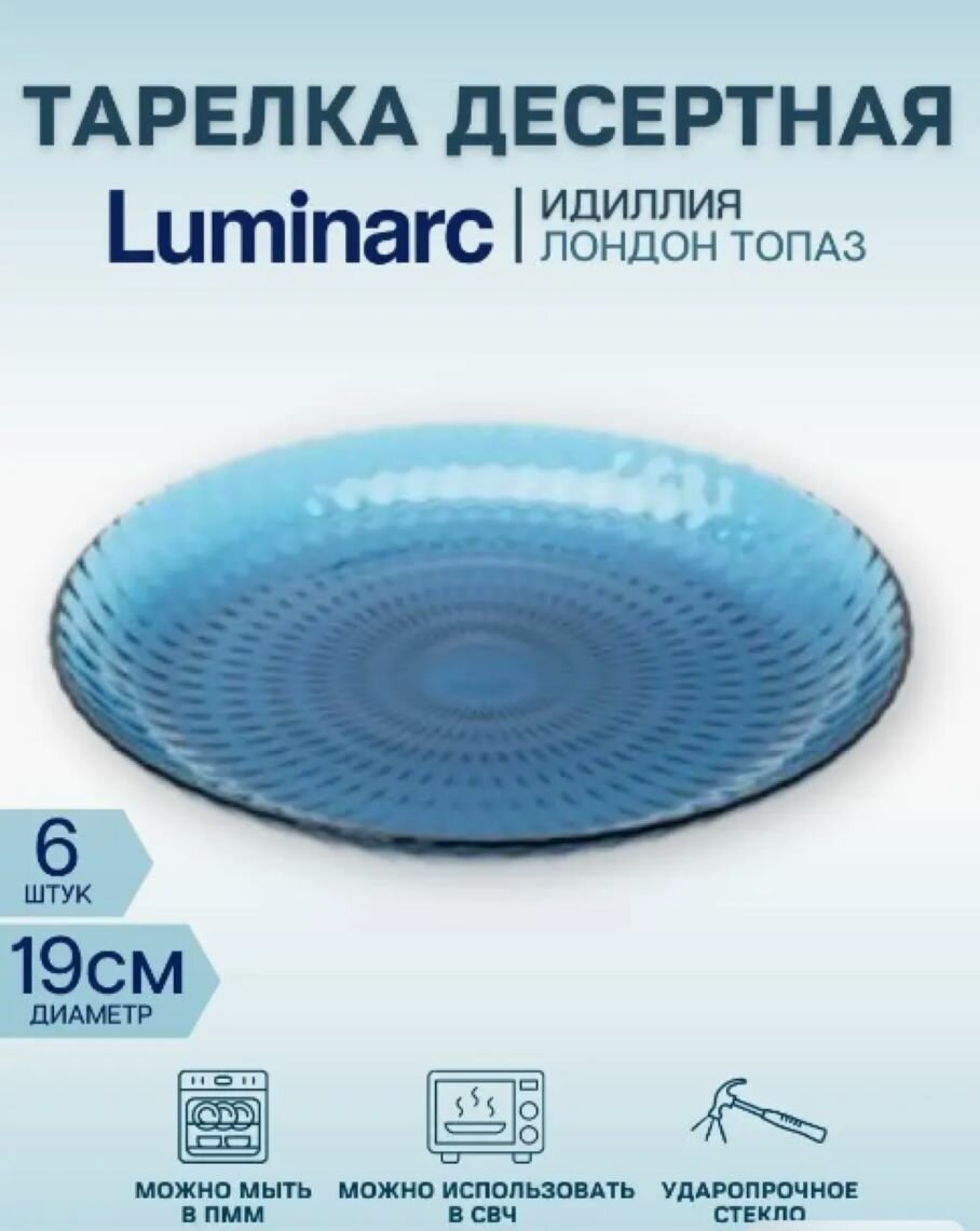 Тарелка десертная Luminarc «Идиллия», d=19 см, стекло, лондон топаз(6 шт.)