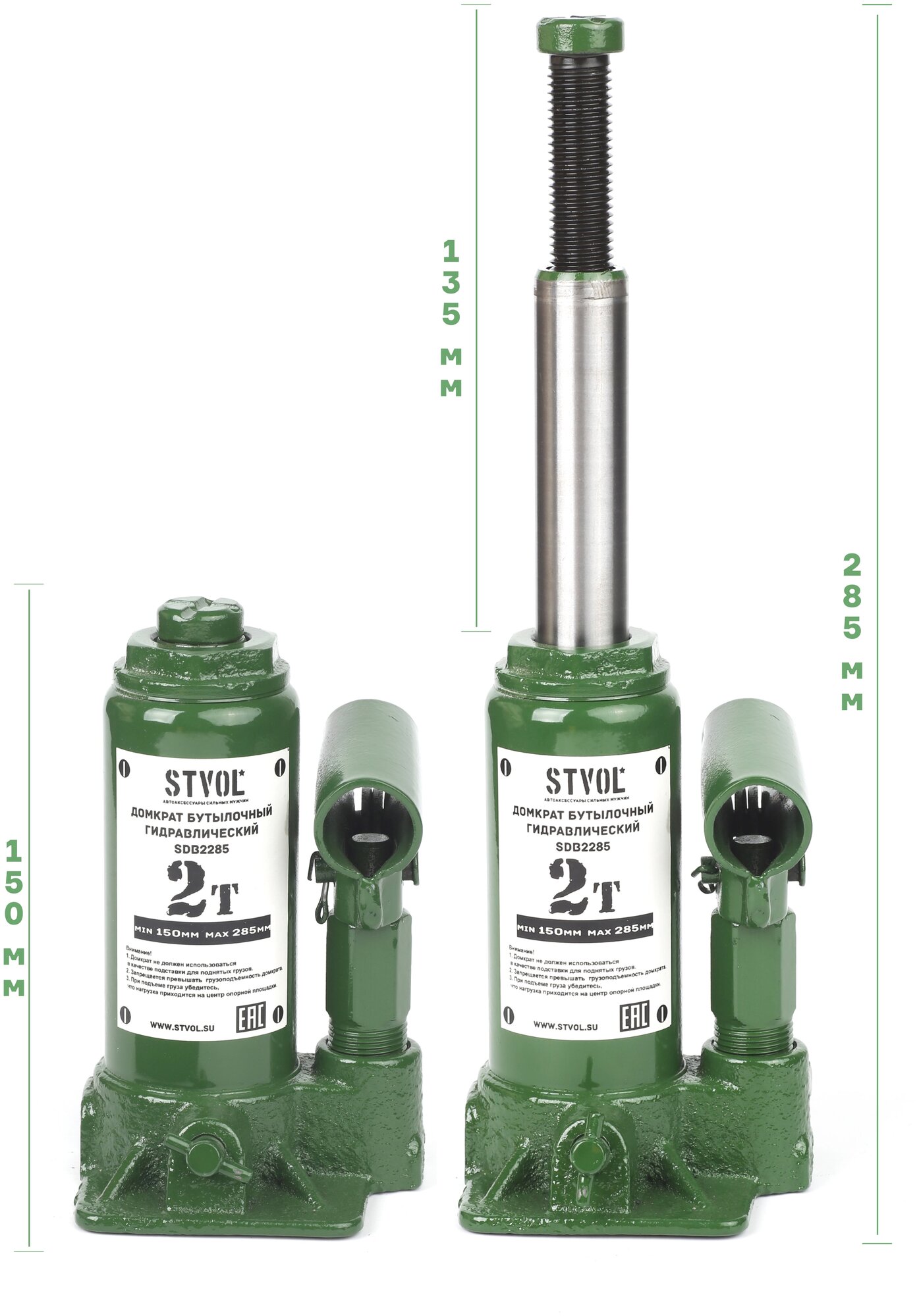 Комплект 2 штук, Домкрат бутылочный Stvol 2т 150-285 мм (SDB2285)