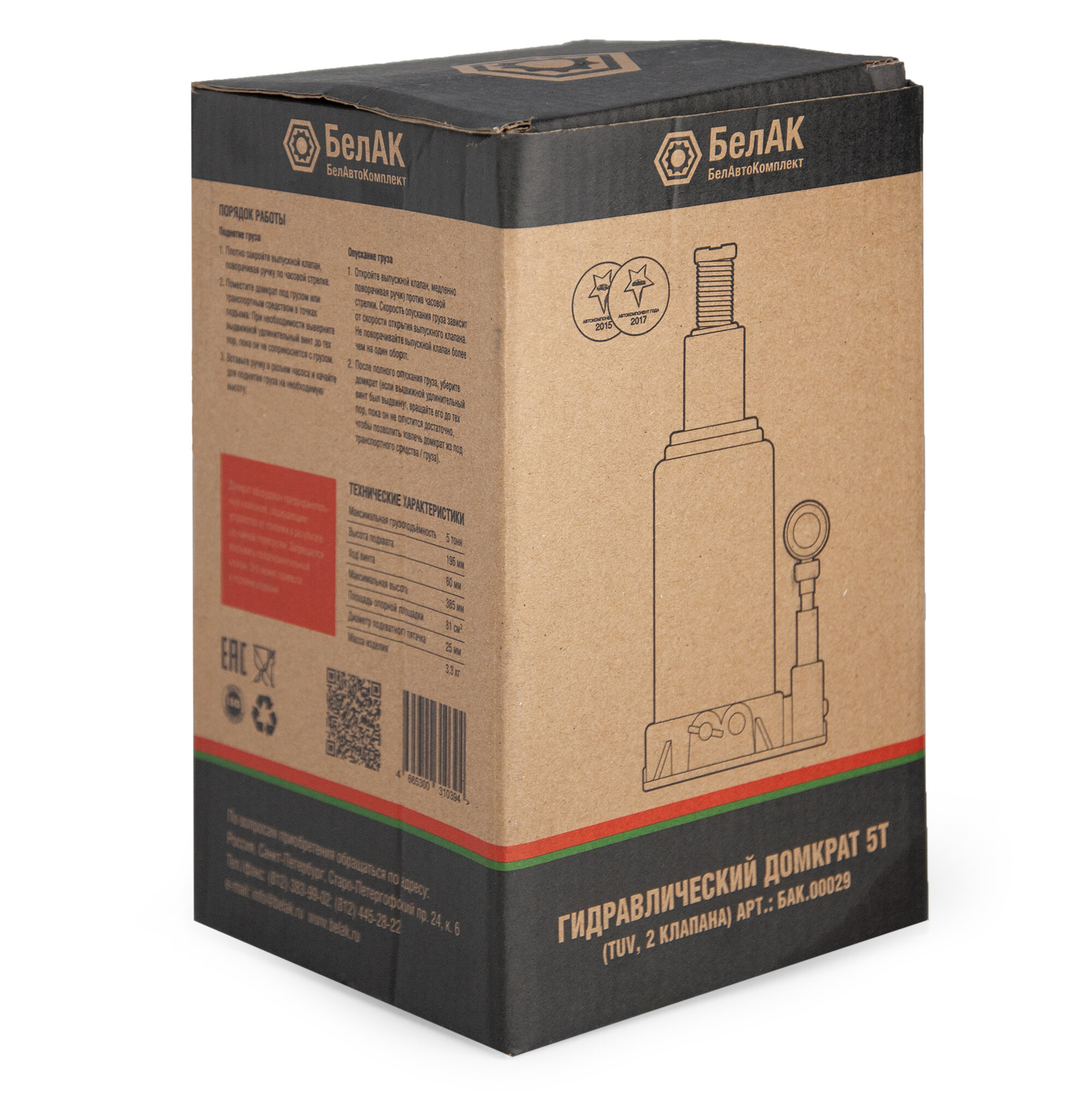 Белавтокомплект BAK00029 БАК.00029_домкрат! гидравлический (TUV, 2 клапана) 5т БелАК\