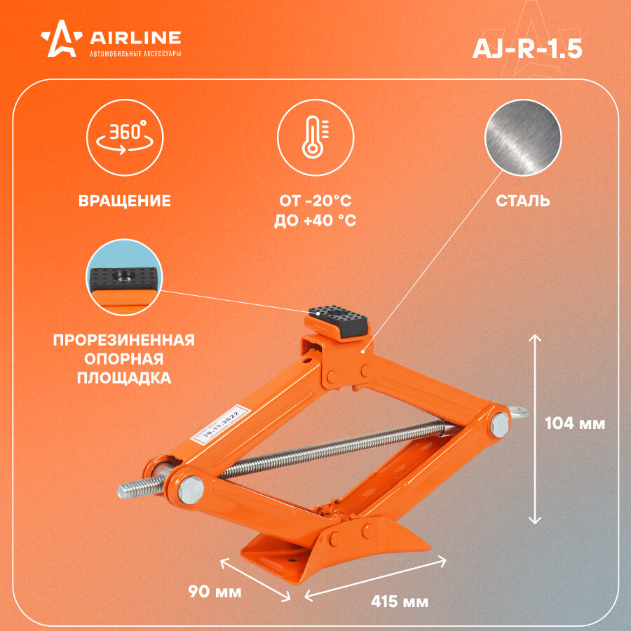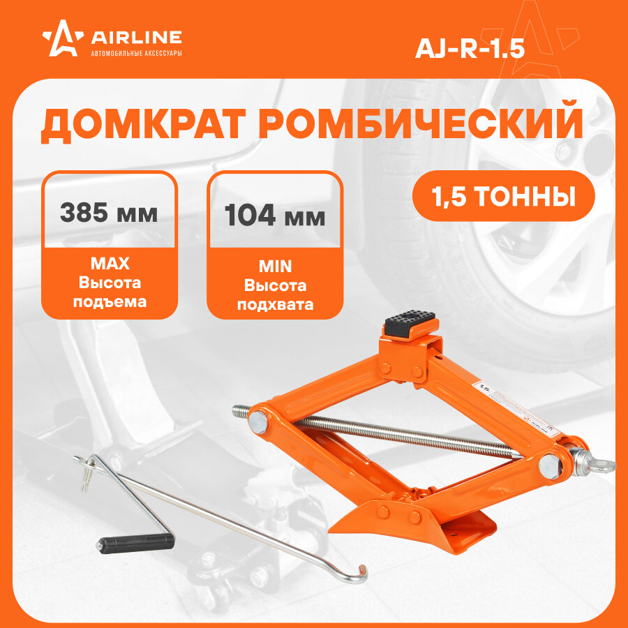 AIRLINE AJ-R-1.5 Домкрат ромбический 1.5т (MIN - 105 мм MAX - 380 мм) (AJ-R-1.5)