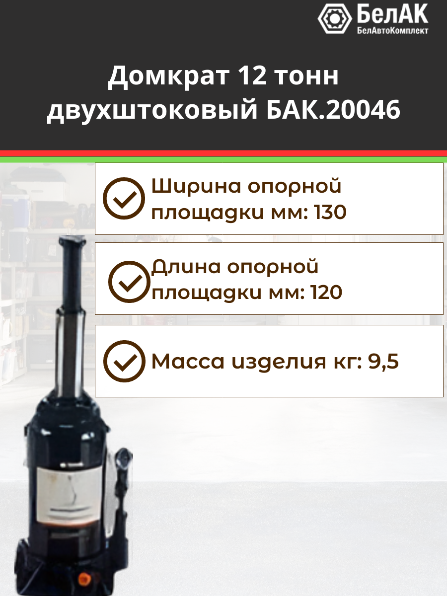 БелАК Домкрат 12 тонн двухштоковый БАК.20046