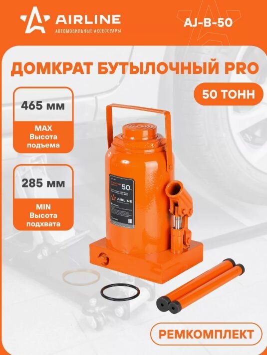Домкрат бутылочный 50т PRO (MIN - 285 мм, MAX - 465 мм) AJ-B-50 AIRLINE