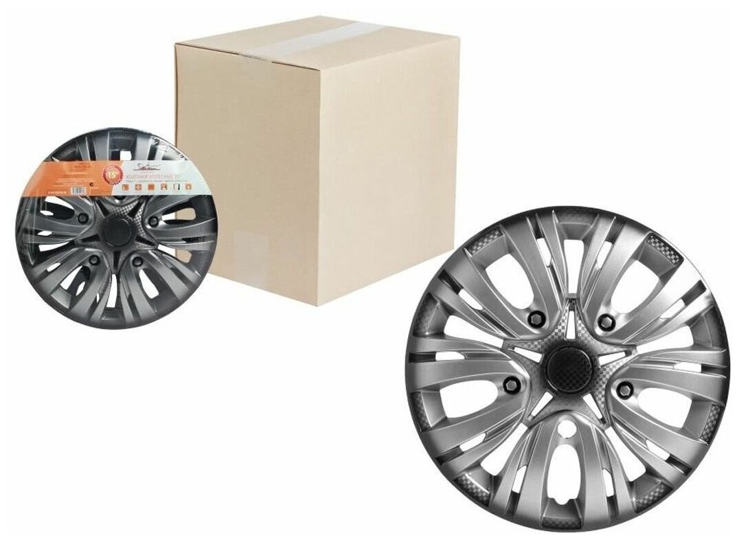 Колпаки колесные 13" "Лион +", серебристо-черный, карбон, компл. 2 шт.