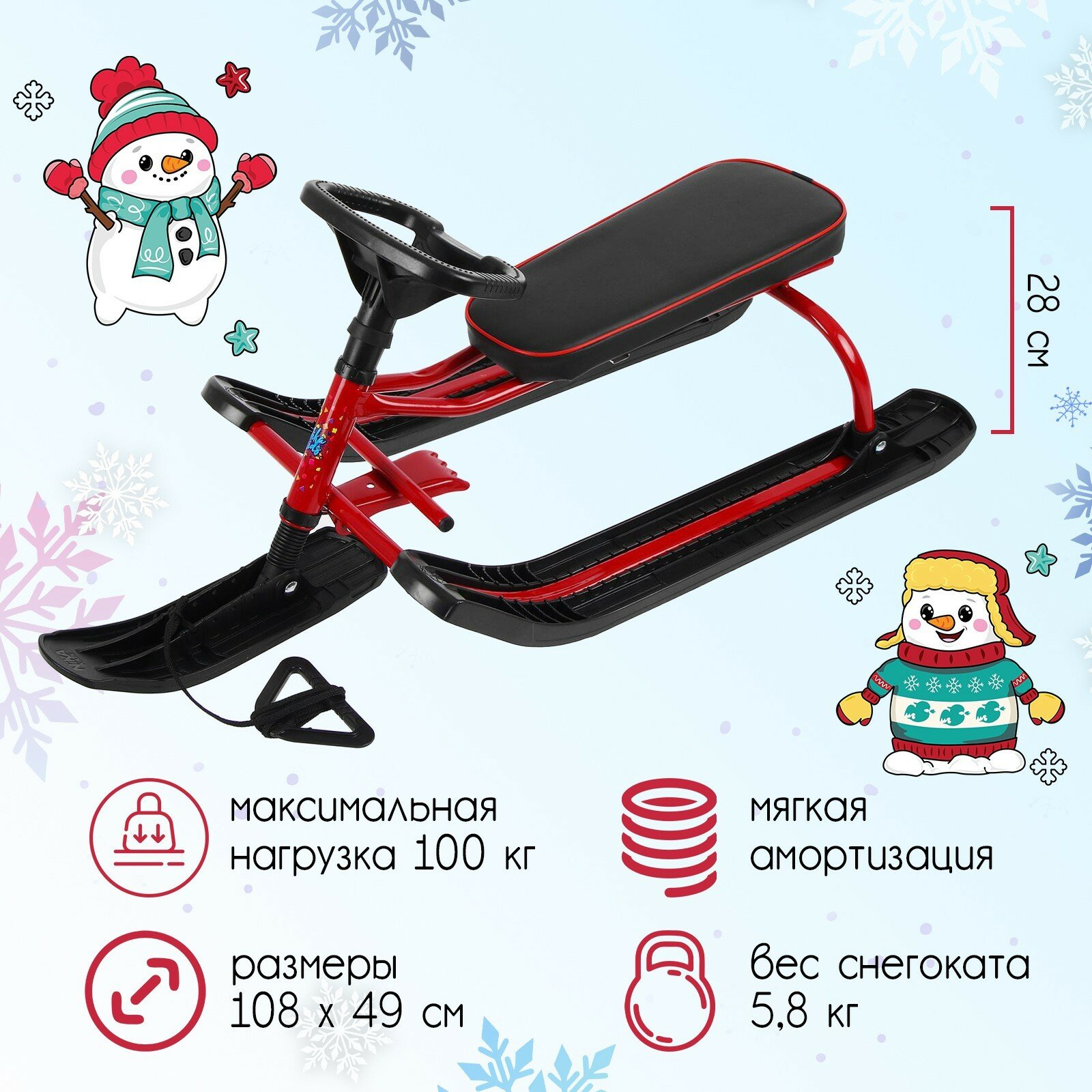 Игрушка.Снегокат "Тимка спорт" ТСЛ/К2 красный (2) Высота по сиденью 380мм, грузоподъемность 100кг