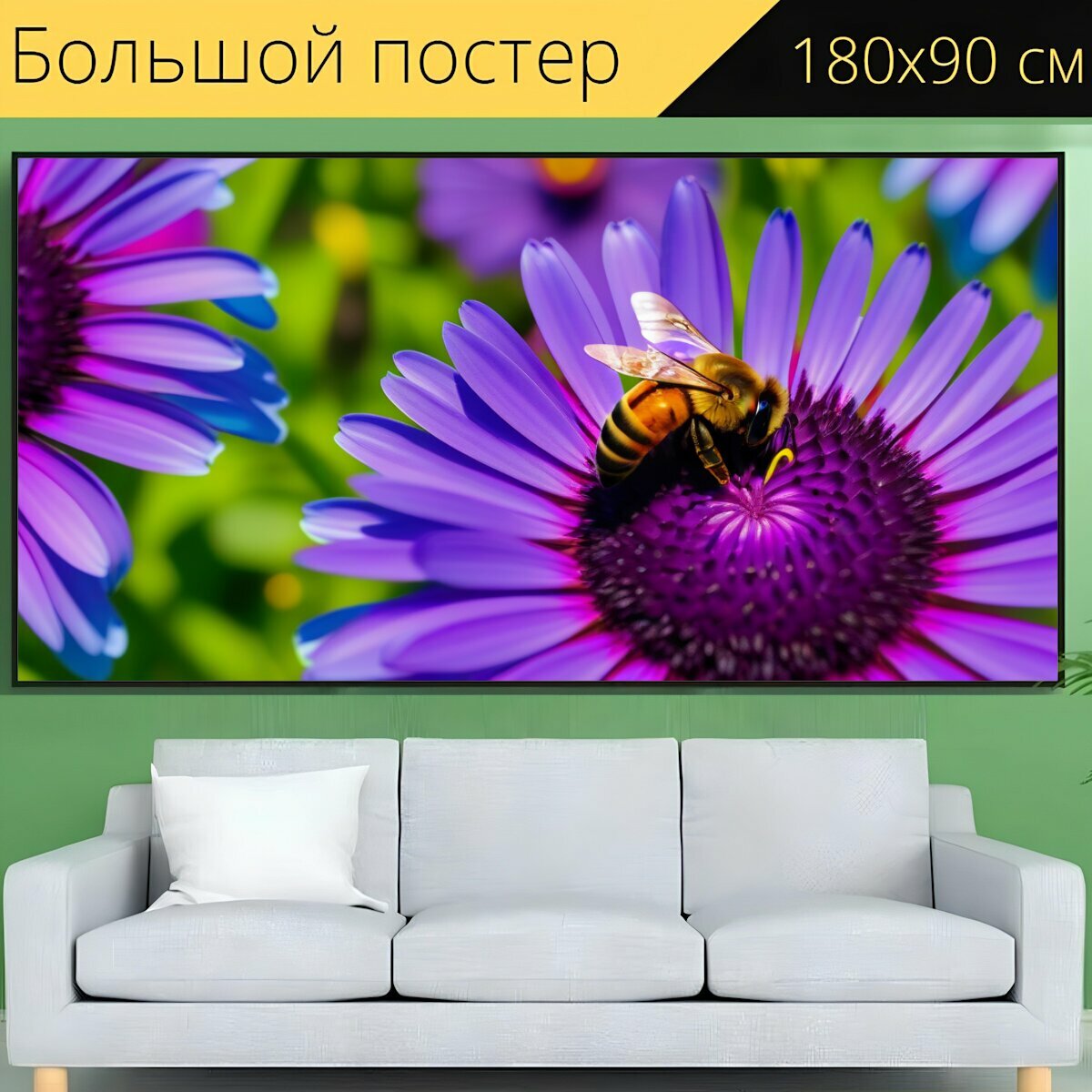 Большой постер "Тюльпаны и пчёлы" 180 x 90 см. для интерьера на стену в тубусе интересное: