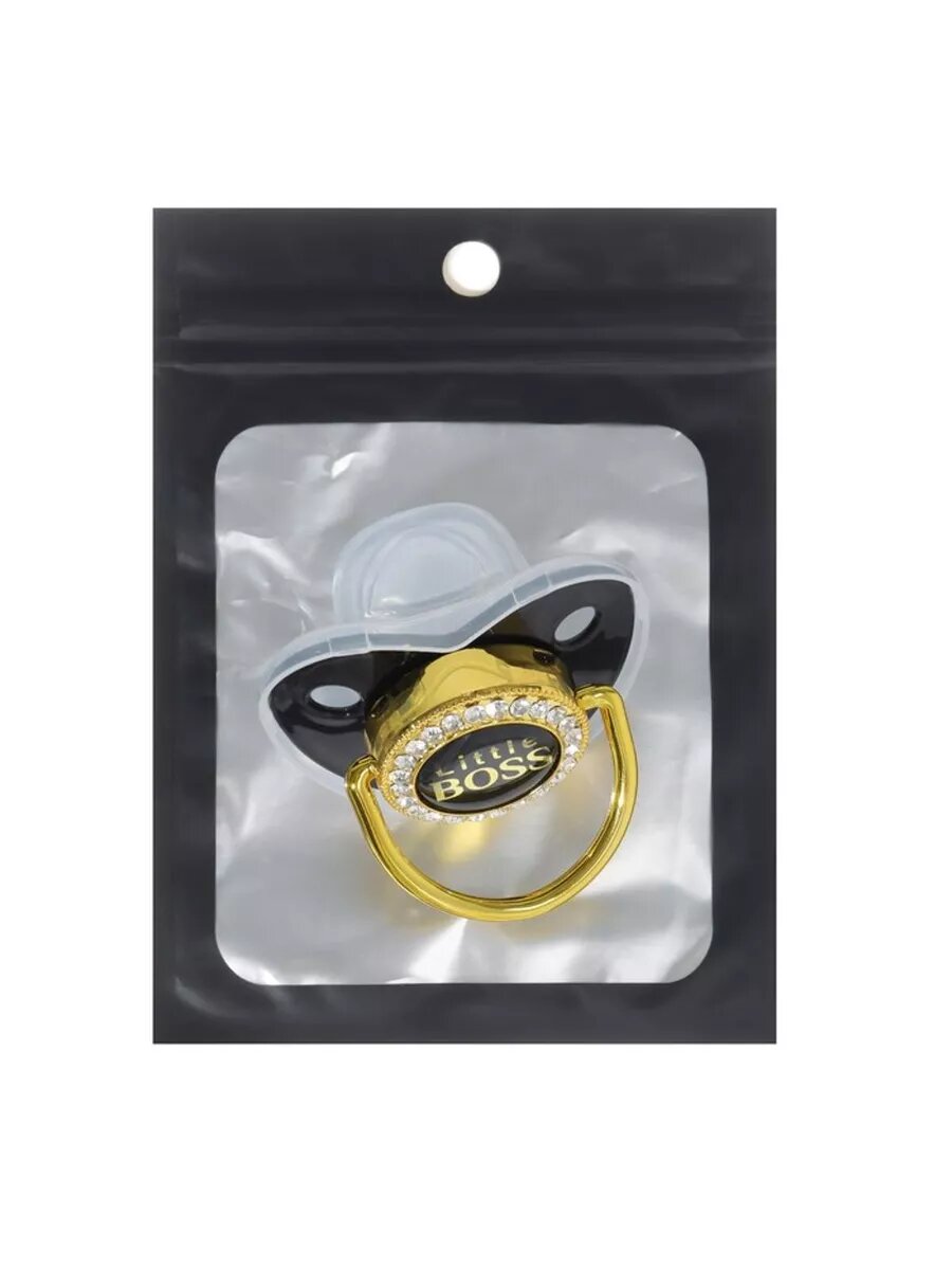 Купить Mum&Baby Соска - пустышка силиконовая ортодонтическая «Маленький босс», от 12 мес., с колпачком, цвет черный/золото, стразы