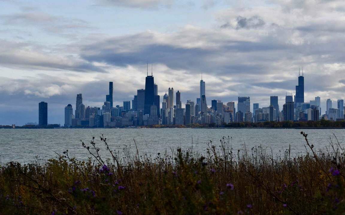 Картина на холсте 60x110 Альянс Лес "Озеро, город, здания, вид, чикаго" на подрамнике / интерьер/ декор интересное: