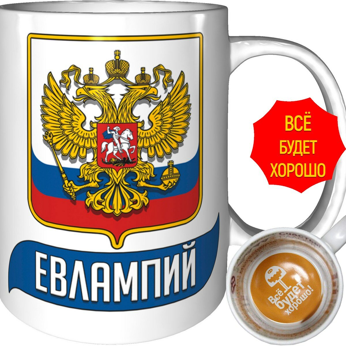 Купить Кружка Евлампий с Флагом и Гербом России - внутри всё будет хорошо