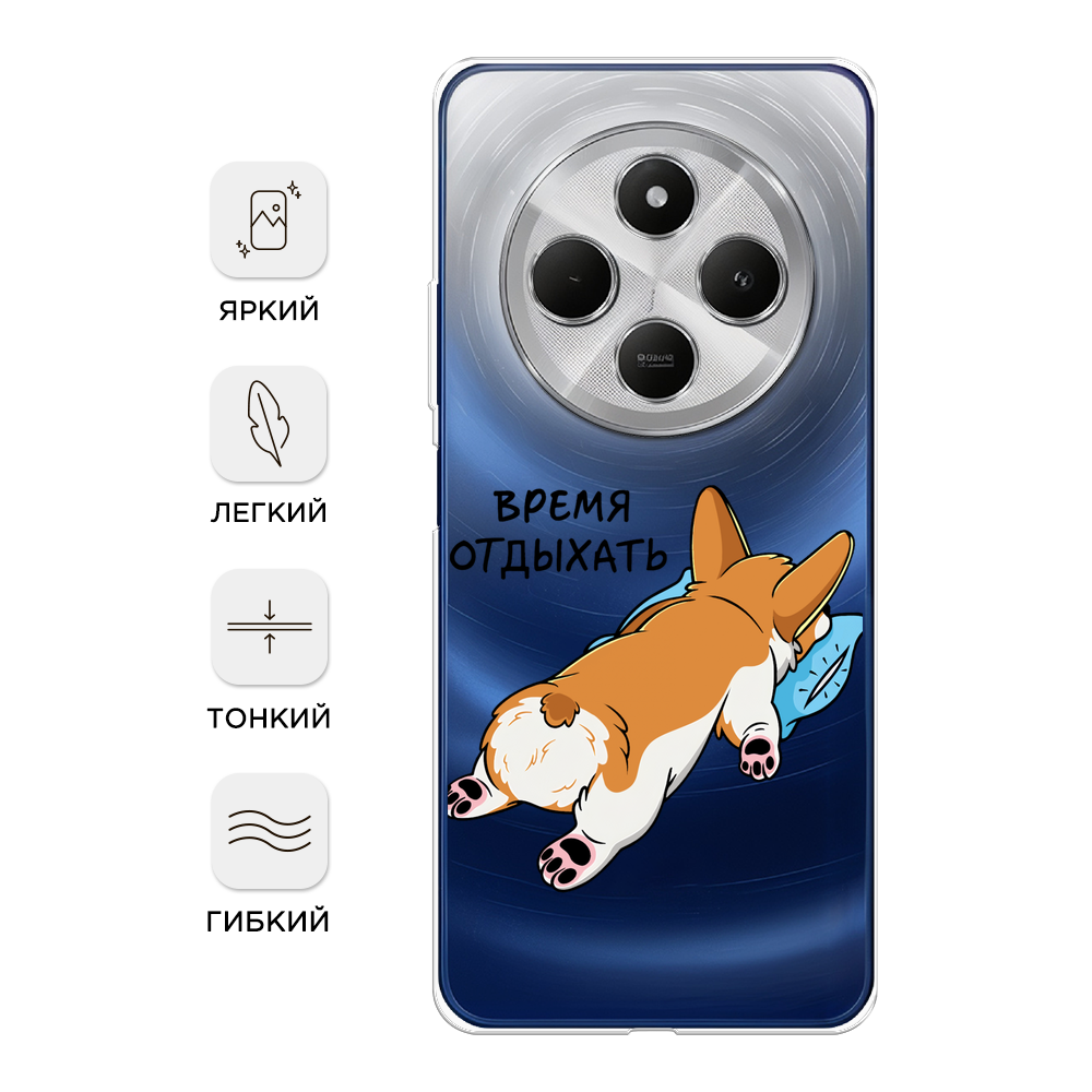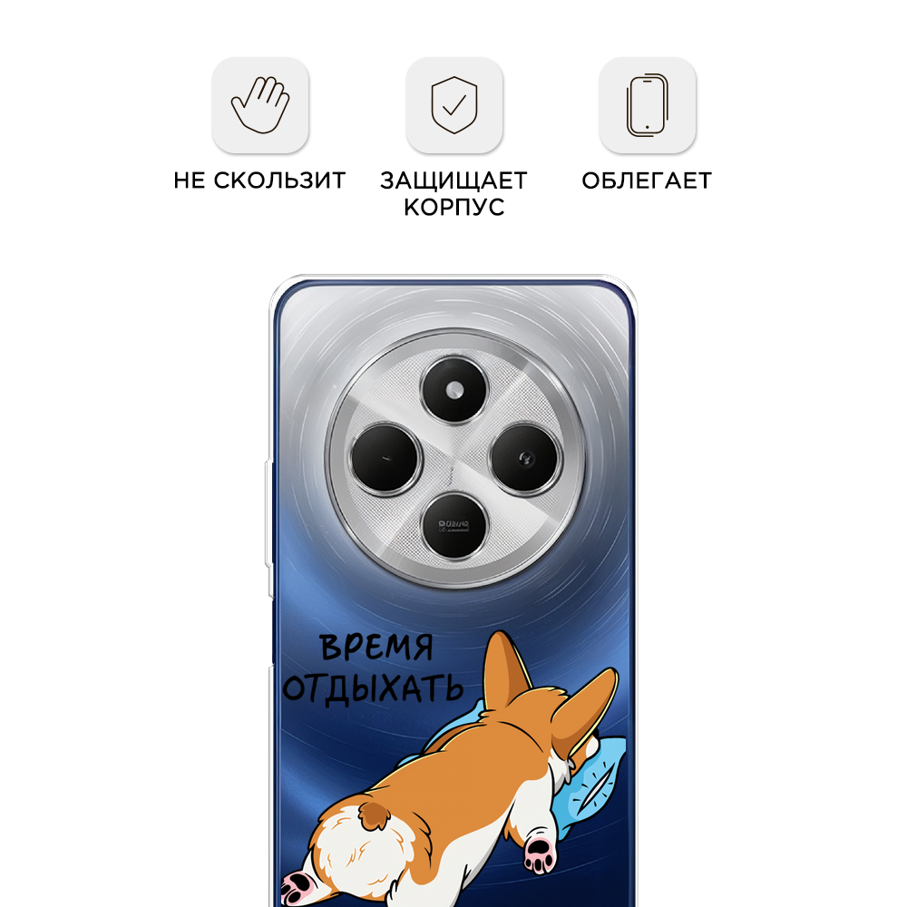 СохранитьЧехол на Xiaomi Redmi 14C/Poco C75 4G / Сяоми Редми 14C/Поко C75 4G с принтом Корги отдыхает, прозрачный интересное: