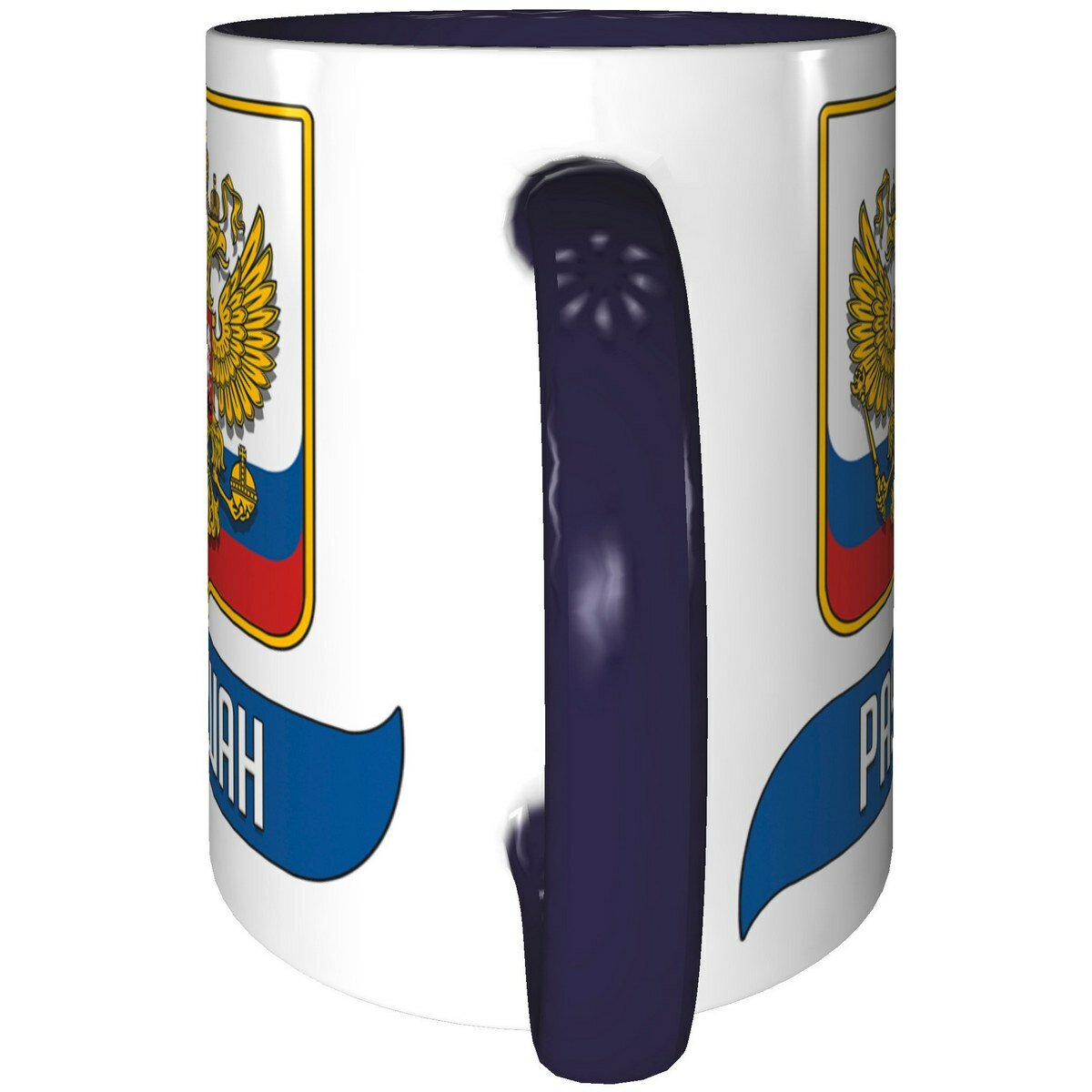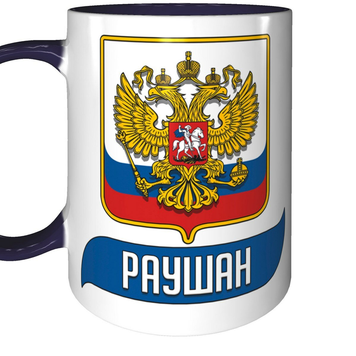 Купить Кружка Раушан с Флагом и Гербом России - внутри и ручка фиолетовая