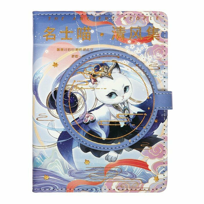 Записная книжка подарочная, А6+, 132 листа, цветной блок, с фигурным хлястиком, на магните "Кошка", микс интересное: