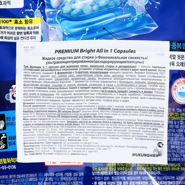 Купить Капсулы для стирки MUKUNGHWA"Феноменальная свежесть", концентрат, 30 шт. Mukunghwa 10366735