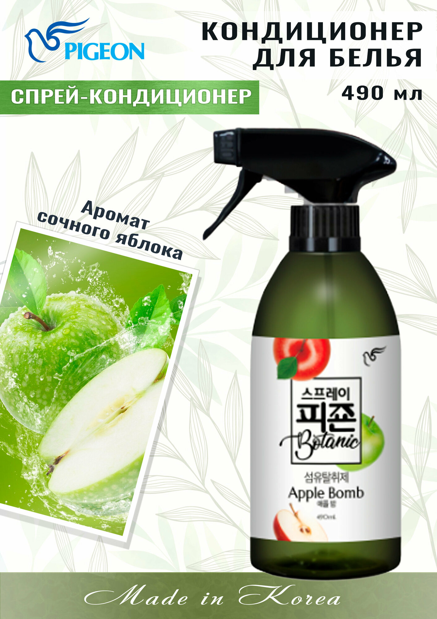 PIGEON Кондиционер-спрей для белья с ароматом яблока / Botanic Apple Bomb, 490 мл
