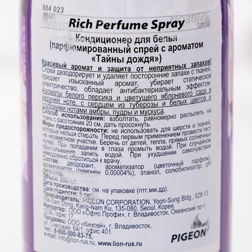 Pigeon Кондиционер-cпрей для белья Rich Perfume Signature Mystic Rain, 0.2 л