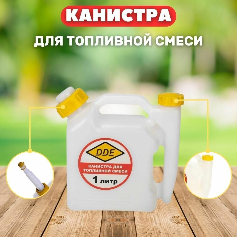 Канистра для приготовления топливной смеси 1 л, трубка для заливки, DDE