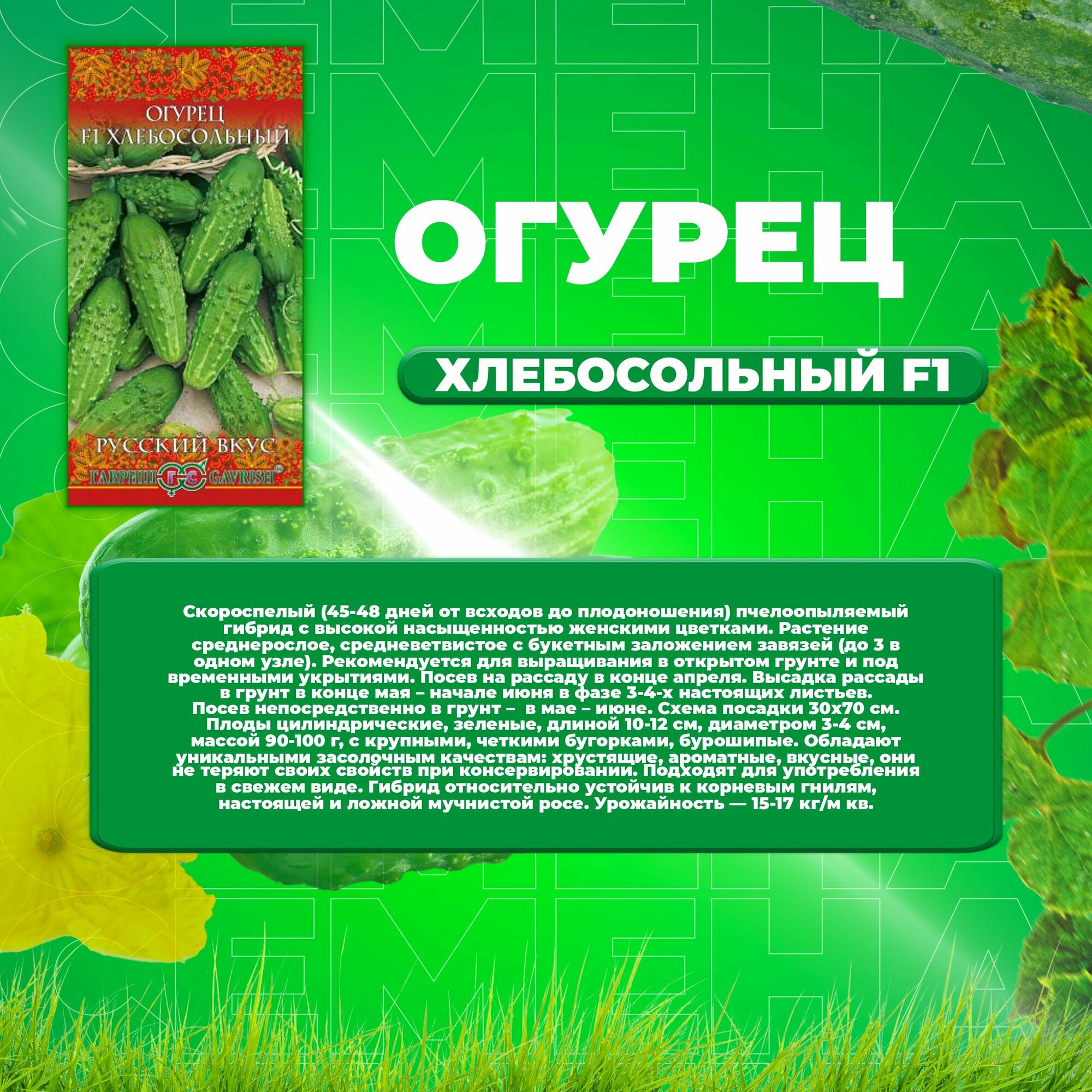 Огурец Хлебосольный F1 0,3г Пч Ранн (Гавриш) Русский вкус - 10 шт!