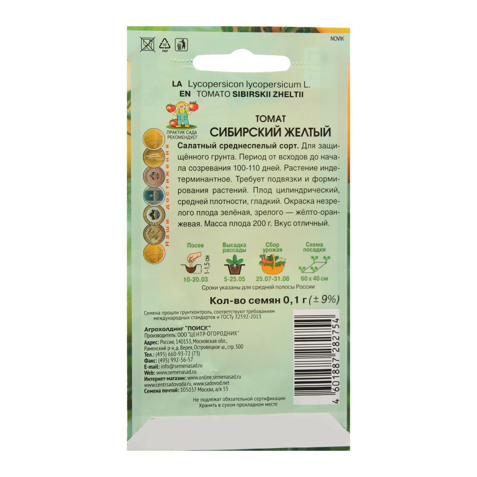 Семена поиск Сибирская серия Томат Сибирский желтый 0,1г / 1 пакет