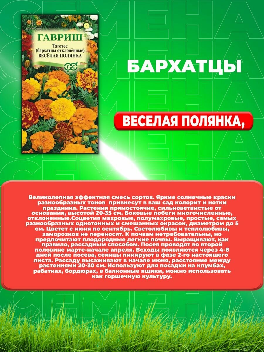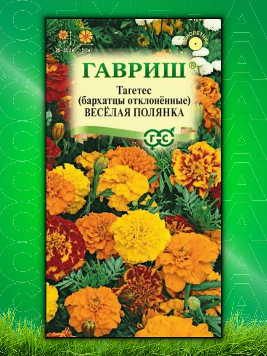 Семена 10 упаковок! Бархатцы откл. Веселая полянка 0,3г 20-35см (Гавриш)