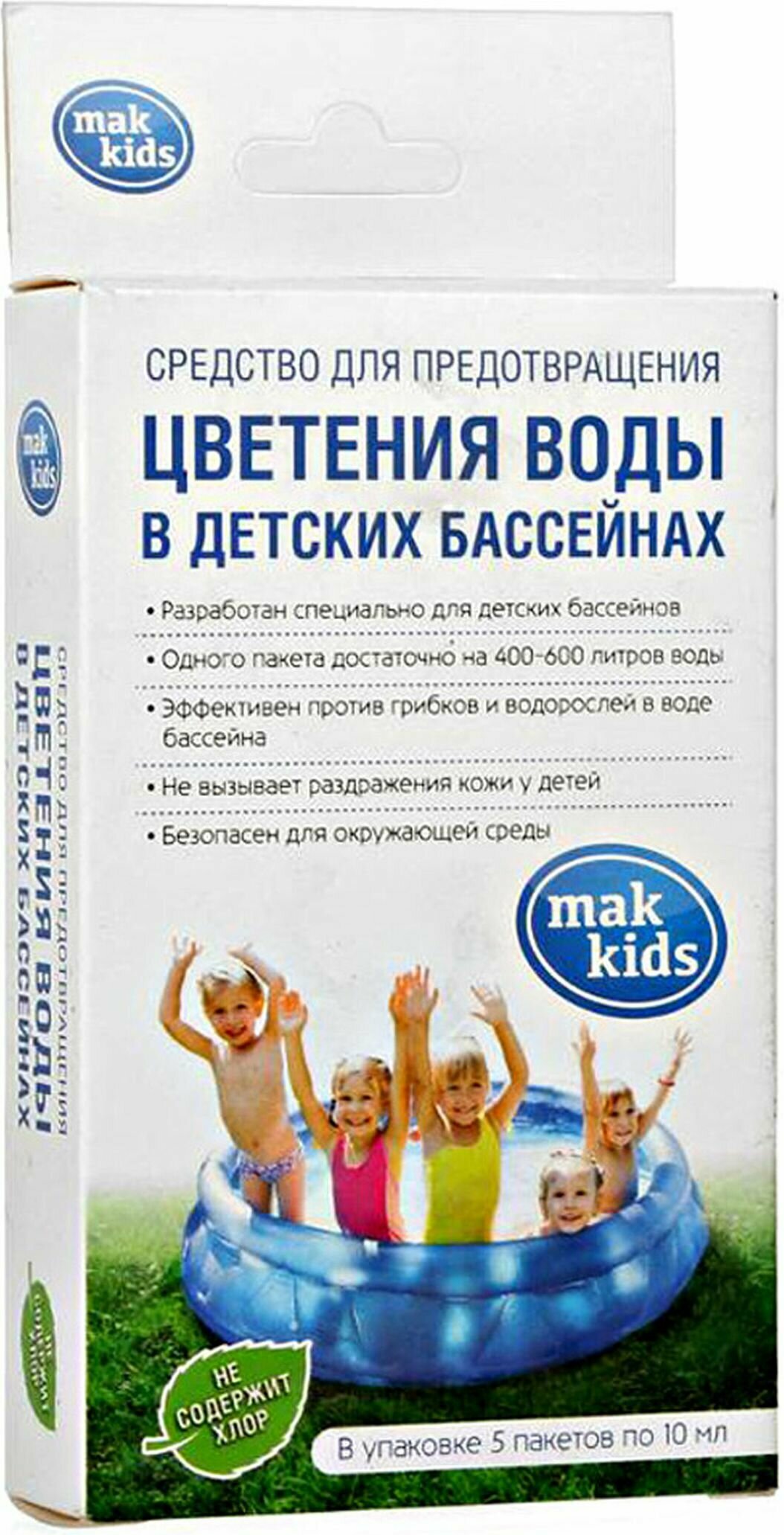 Мультифункциональный препарат MAK KIDS 10433 для детских бассейнов, не содержит хлора, 5 пакетов по 10 мл.