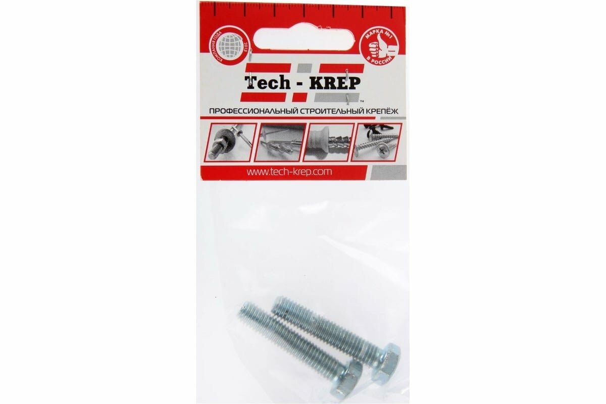 Болт Tech-Krep DIN933 с шестигранной головкой, оцинкованный М16х50 2 шт - пакет 112237