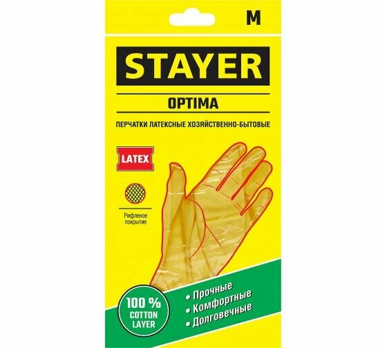 Перчатки латексные STAYER OPTIMA хозяйственно-бытовые, размер M, 1120-M_z01