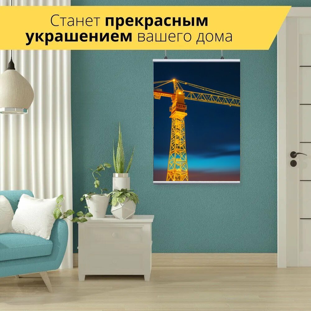 Картина на холсте "Подъемный кран с яркими огнями на фоне ночного неба" с подвесами 60х90 см. для интерьера на стену интересное: