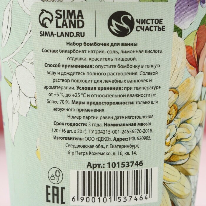 Купить Подарочный набор косметики «Самой нежной», бомбочки для ванны 6 х 20 г, чистое счастье
