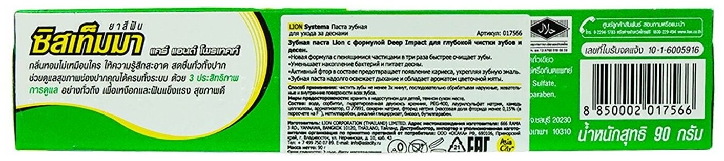 LION Thailand Паста Systema Зубная для Ухода за Деснами, 90г
