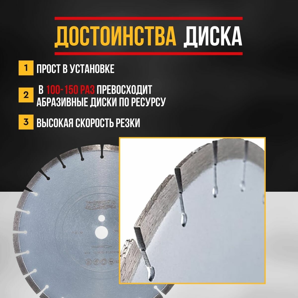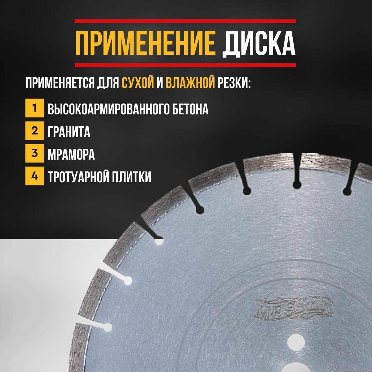 СохранитьДиск алмазный сегментный MESSER FB/M по железобетону, с возможностью сухой резки, 350D-3.2T-12W-24S-25.4 Д.О. интересное: