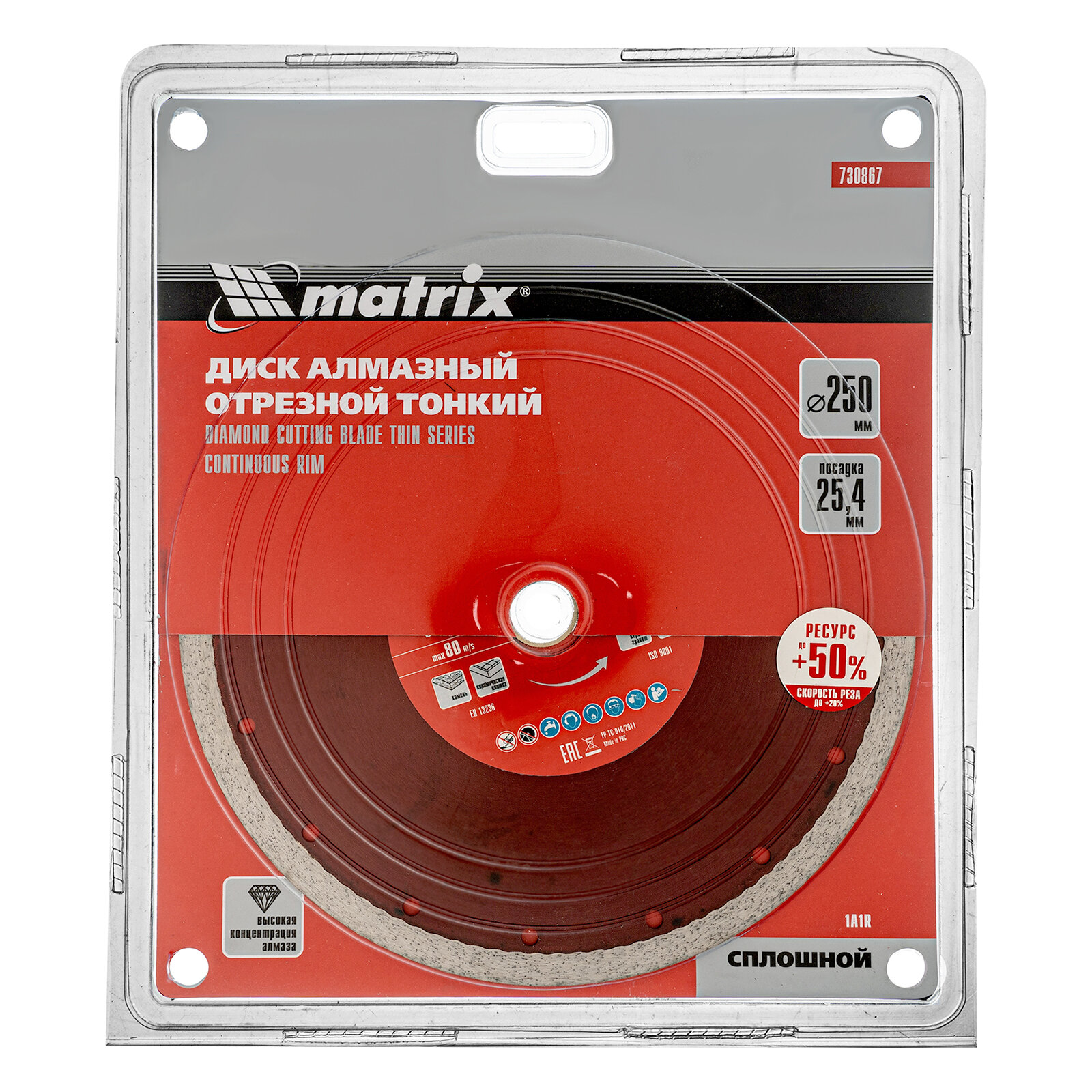 Диск алмазный сплошной, тонкий, 250 х 25.4 мм, мокрое резание Matrix 730867