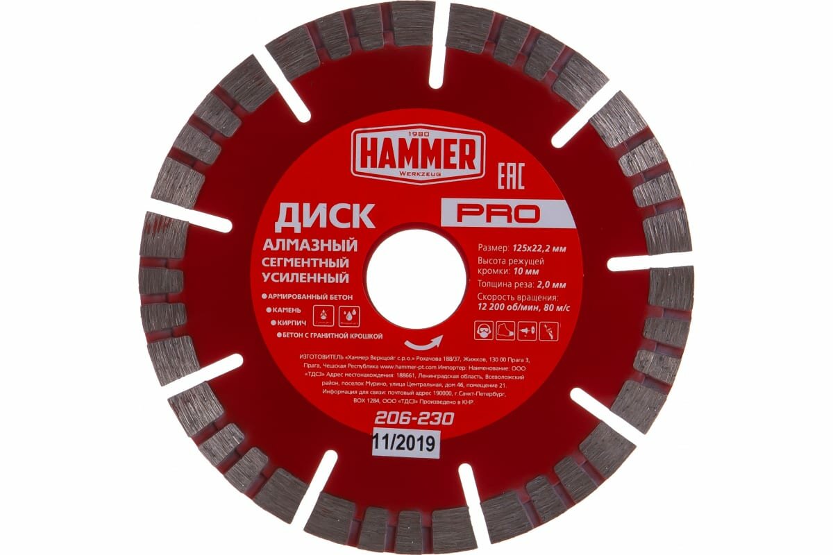 Диск алмазный отрезной Hammer PRO 206-230, 125 мм, 1 шт.