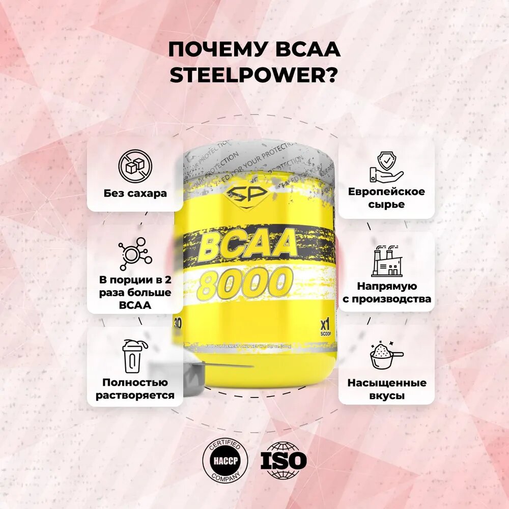 Ниже Вы можете прочитать отзывы на STEEL POWER BCAA 8000 30 порц (300 г) (Лесная ягода), ознакомится с подробными характеристиками, посмотреть интересные обзоры и фотографии на STEEL POWER BCAA 8000 30 порц (300 г) (Лесная ягода).